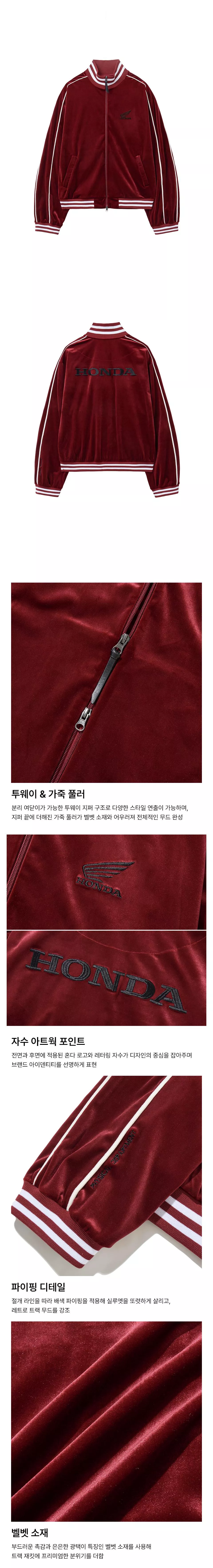 Honda Velvet Track Jacket復古絲絨撞色拼接運動賽車外套